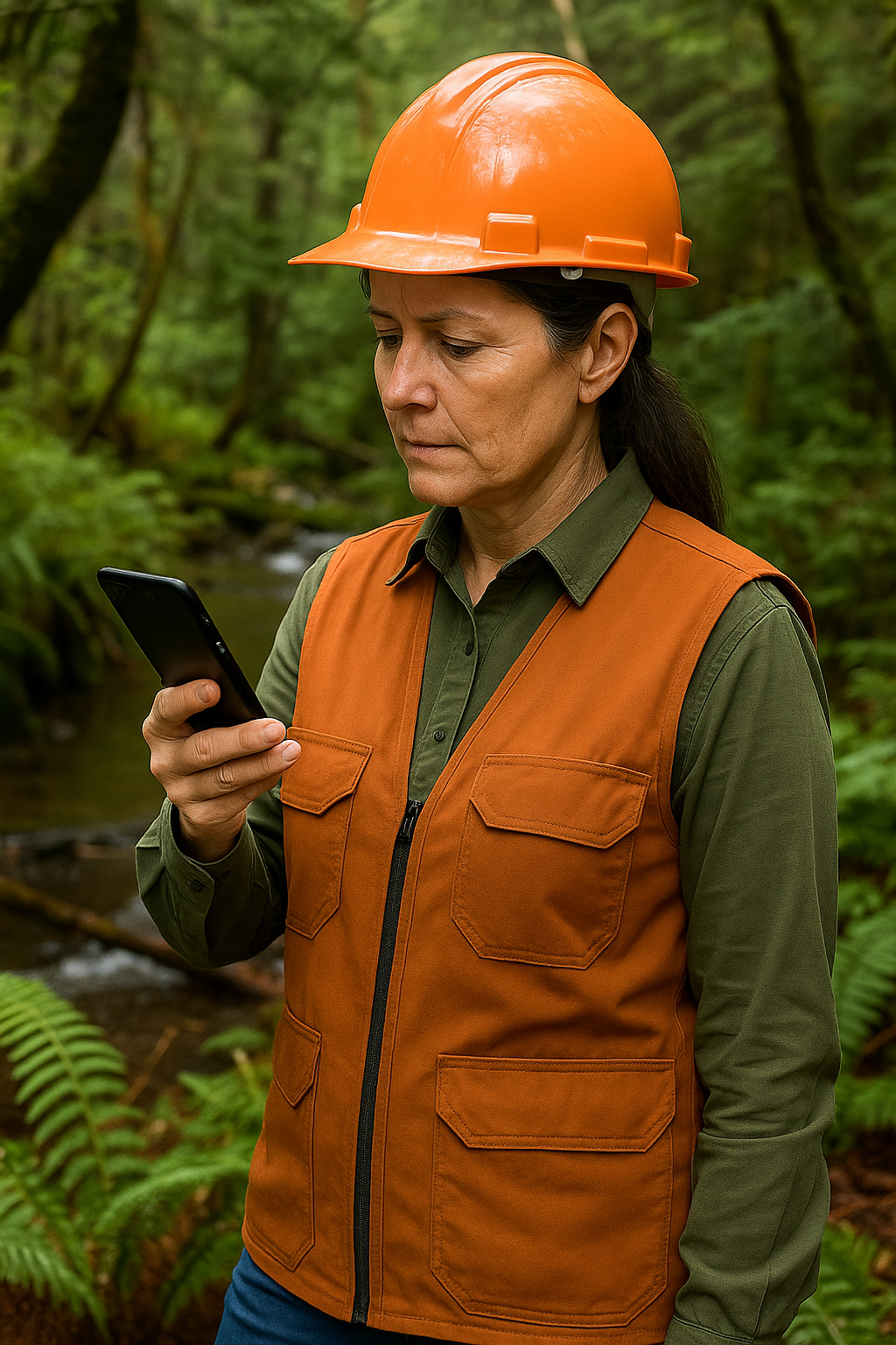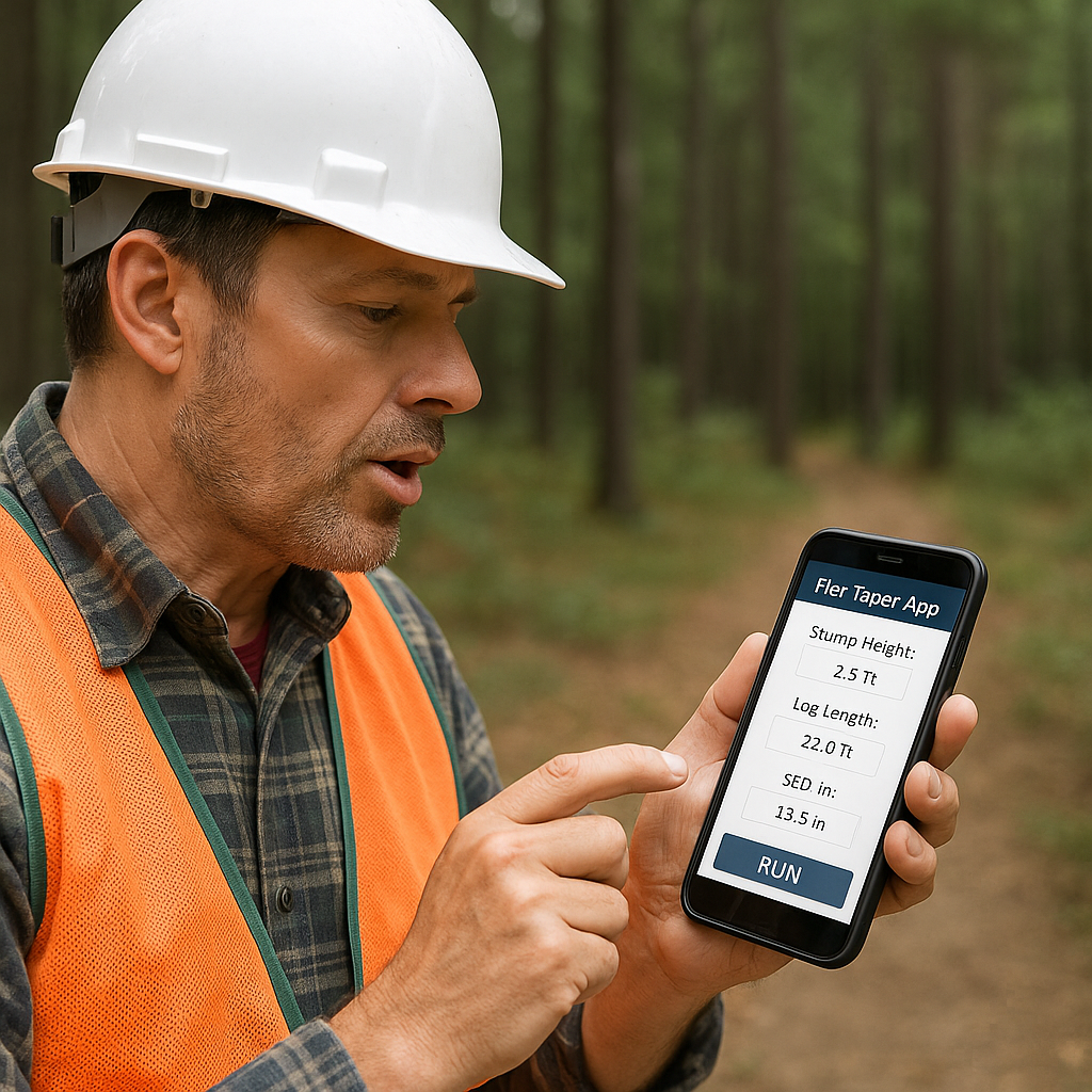 Many FRASS users begin in the same way as the forester shown here: with a diameter tape, a smartphone, and a stand of trees. Using the Flex Taper mobile app, they capture DBH, heights, crown ratio, and upper-stem diameters in the field. Those measurements flow directly into the FRASS system, where they are reconciled with growth and yield models, delivered log markets, and Real Price Appreciation (RPA) forecasts.
